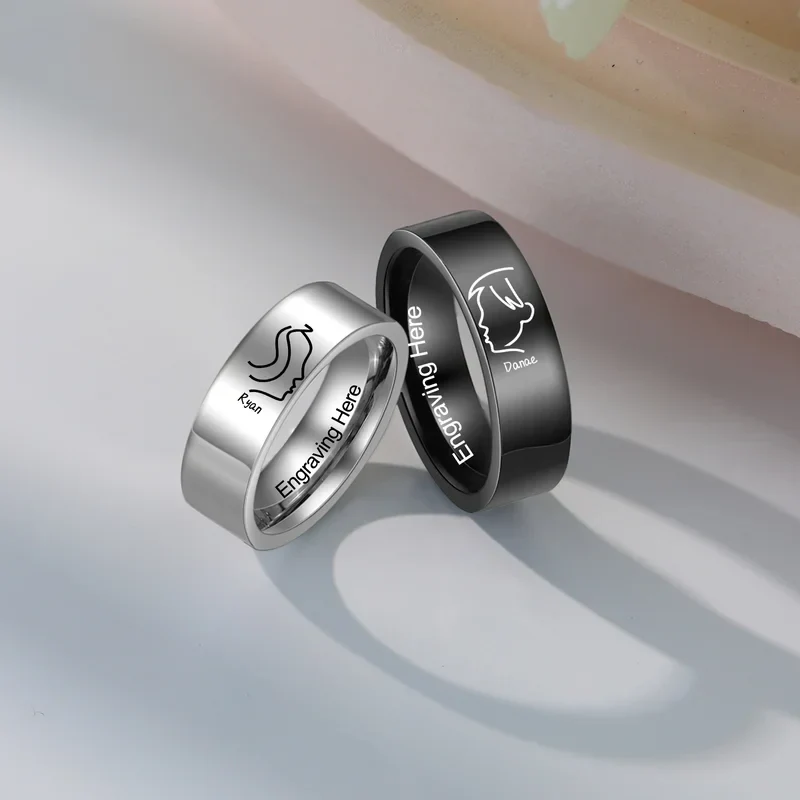 Symbolise your enduring bond with our Couple Rings with Name, crafted from premium stainless steel in striking black and silver hues. Designed for couples, these elegant rings are a perfect blend of style, durability, and personalisation, making them a timeless keepsake of your shared journey.