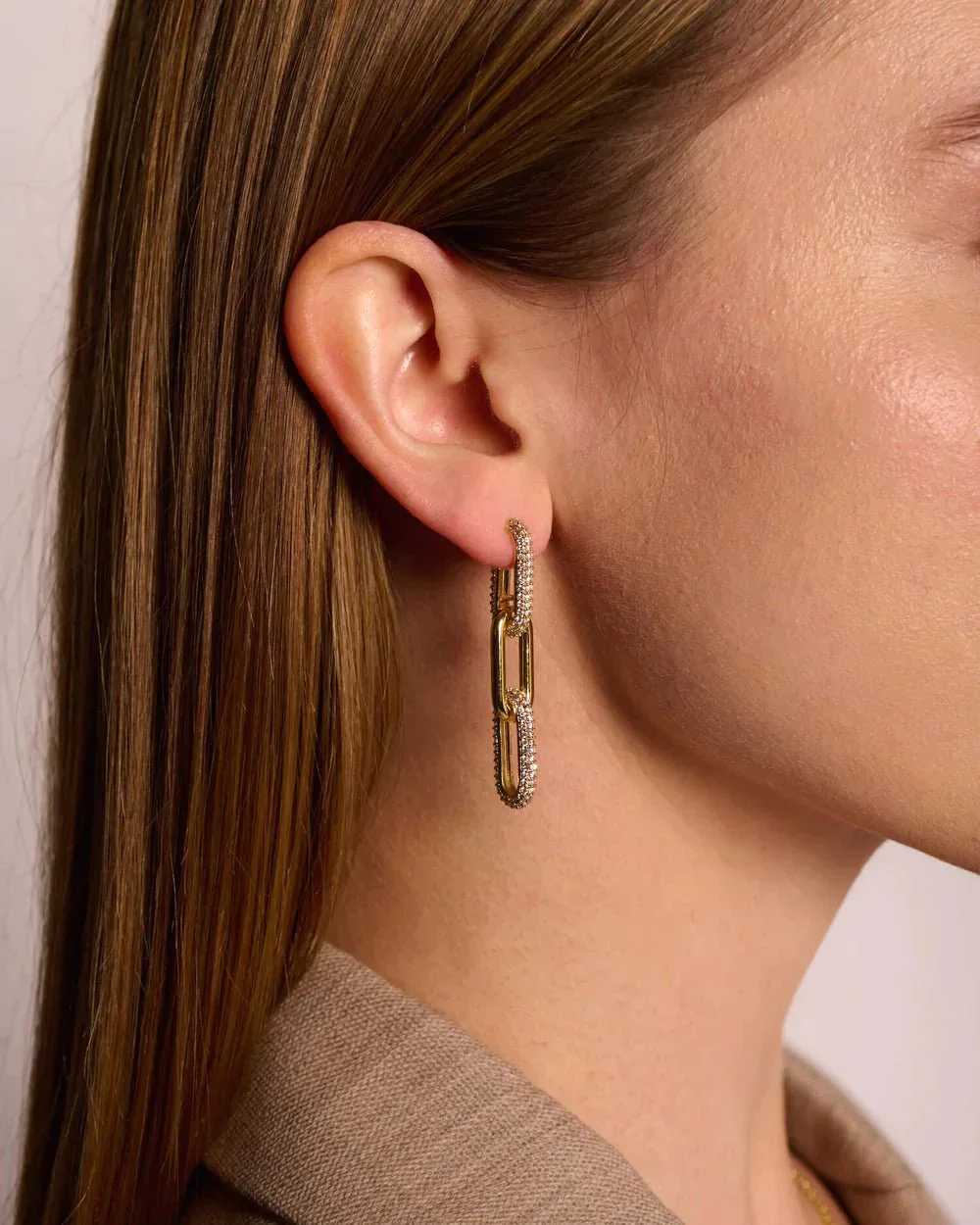 Half Pave Chain Earrings
