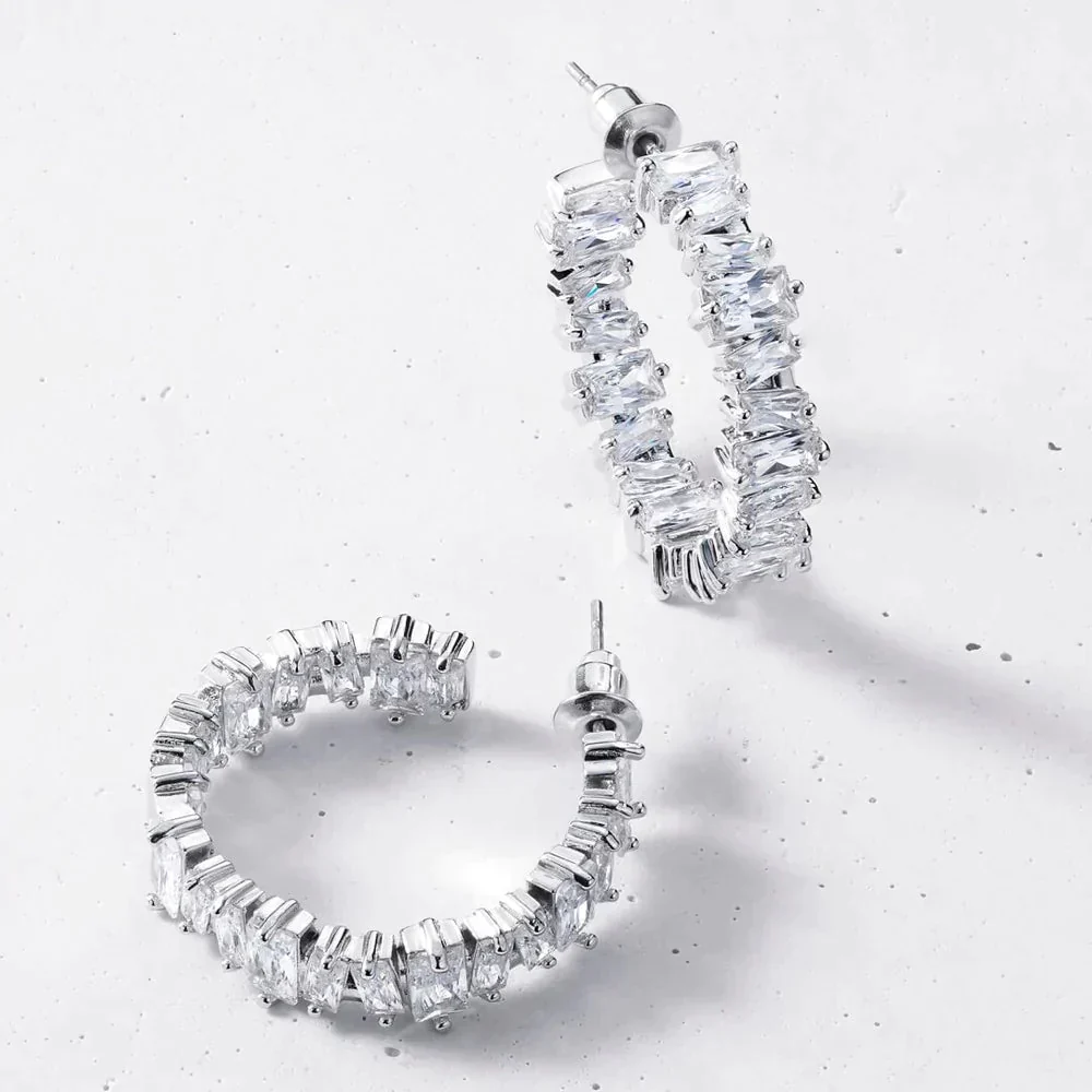 - Note: Crystals are paved where visible, i.e. there are no crystals at the lower back of the earrings or inner top